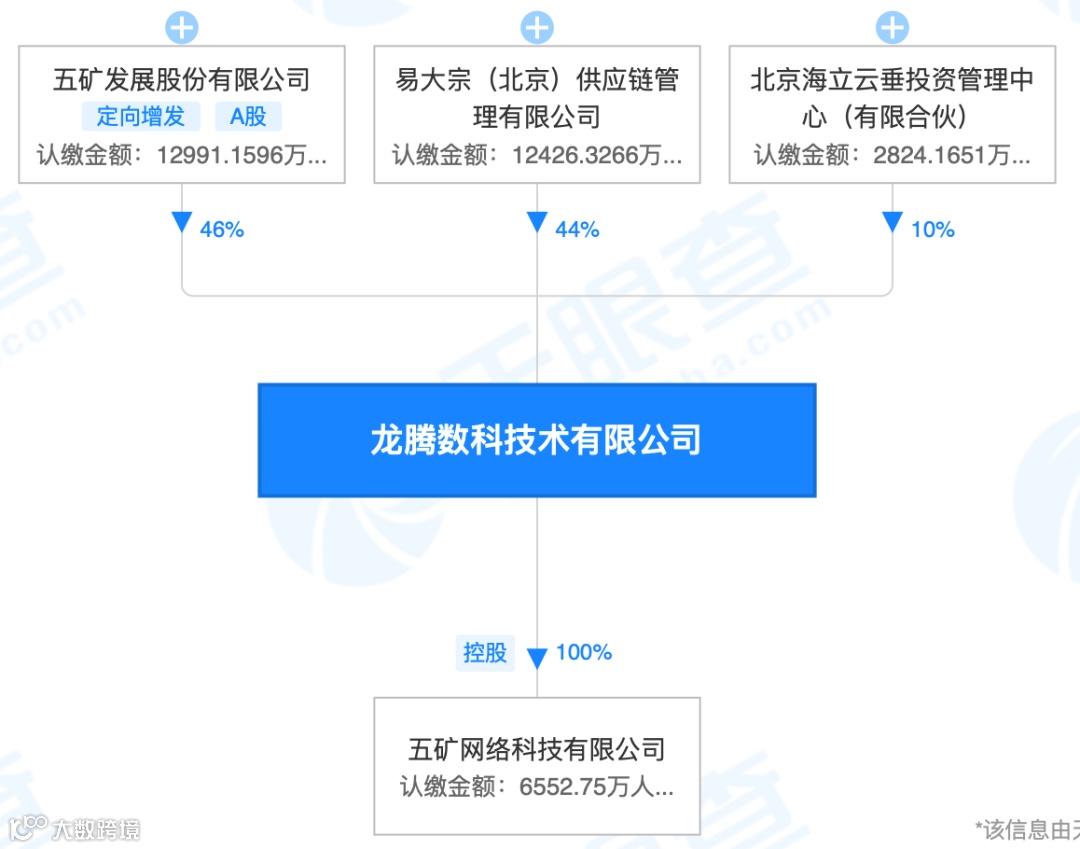 根据五矿发展自述,2012年5月,该公司成立全资子公司五矿电子商务有限公司(简称“五矿电商”)。2015年11月,杭州阿里创业投资有限公司(简称“阿里创投”)增资入股五矿电商,增资后五矿电商系五矿发展与阿里创投、北京海立云垂投资管理中心(有限合伙)共同出资设立的合营企业,各方持股比例分别为46%、44%、10%。2019年12月,阿里创投将其持有的五矿电商44%股权转让给易大宗(北京)供应链管理有限公司。