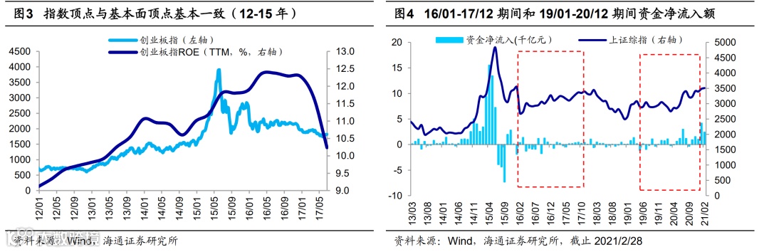 回顾历史,牛市结束信号是盈利见顶、情绪亢奋,目前没到。春节后美债利率上升诱发了A股的回调,市场上有一种声音说现在的行情就像2018年,年初冲高后市场在流动性收紧的背景下进入熊市。其实这个问题在去年年底的周报《明年更像哪一年?-20201227》中我们讨论过,我们认为2021年不像2018年:资金面上2018年宏观流动性非常紧,微观资金面也不充裕,而今年年货币政策定调为“灵活精准、合理适度”,宏观流动性温和收紧、微观流动性非常充裕;基本面上2018年企业盈利增长见顶回落,而2021年盈利回升中;行情背景角度,16-17年是结构市,但19年以来是是场外资金不断入场的牛市,牛市不会轻易结束。
