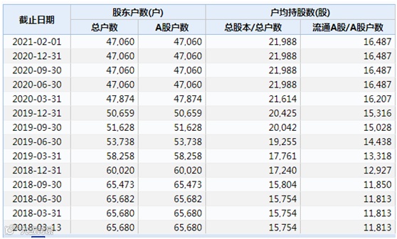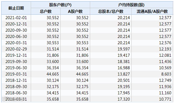 数据显示,截至2021年2月1日,*ST秋林股东户数为30552户。