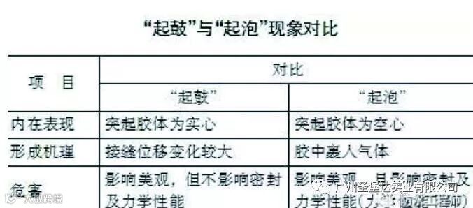 密封胶裹入了气体,在其表面或内部形成空腔,统称为“起泡”。