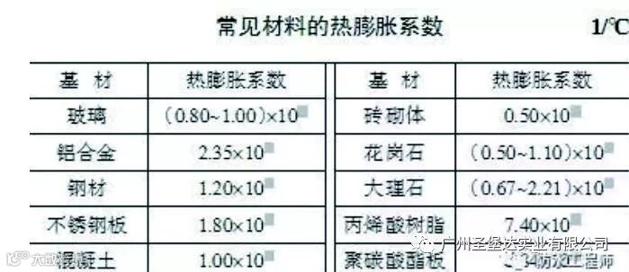 热位移是导致接缝尺寸发生变化的主要因素,其计算公式为:热位移=热膨胀系数×温度变化×材料尺寸。热膨胀系数越高、温差越大、材料尺寸越大,则热位移作用越显著,引起的接缝变位越大,出现胶缝“起鼓”的几率也越高。