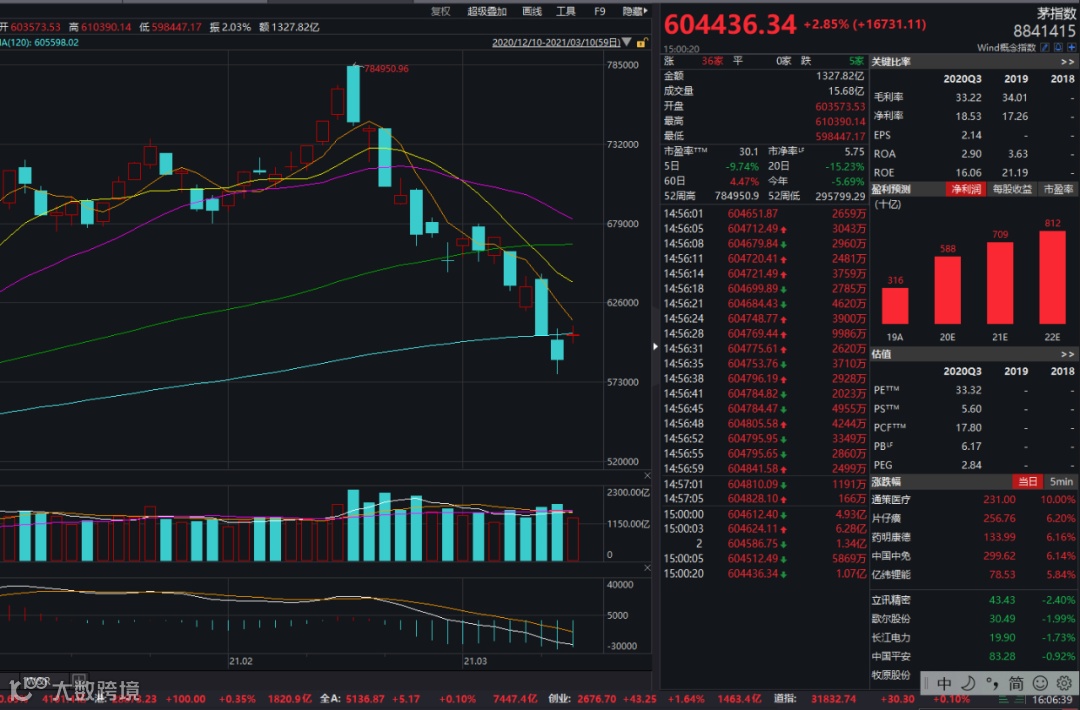 不过3月9日,10年期美债收益率大跌近3%,脱离了1.6%的高位,纳指昨夜全面反攻大涨3.69%,今日A股核心资产也全线回暖。