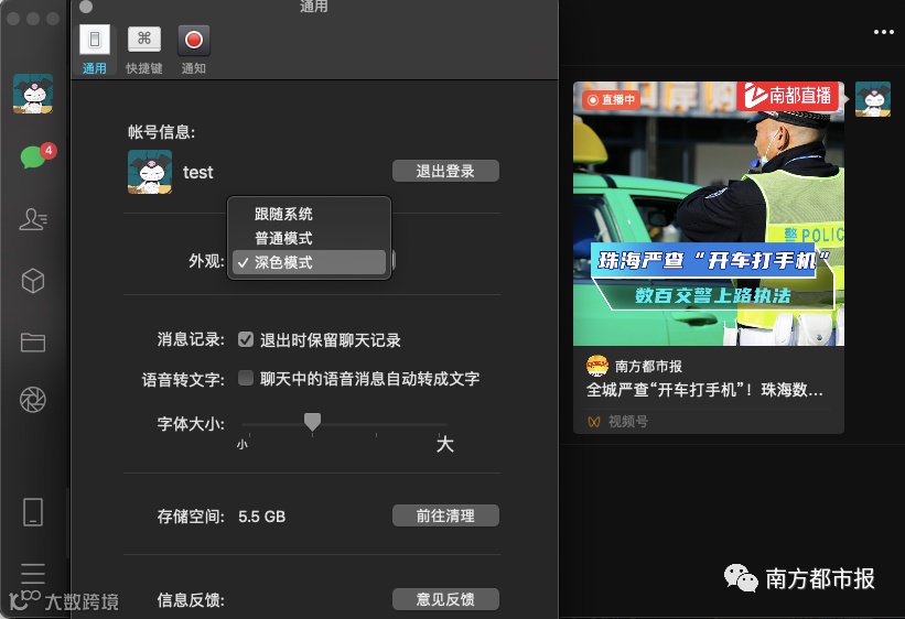 3.在 OS X 10.14 版本及以上系统支持深色模式;