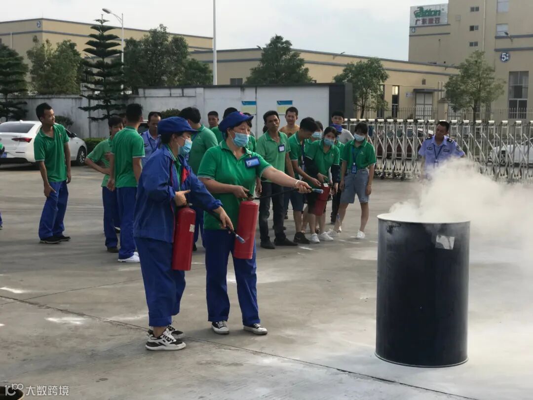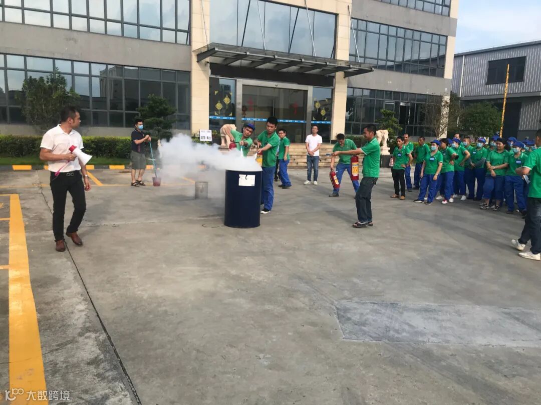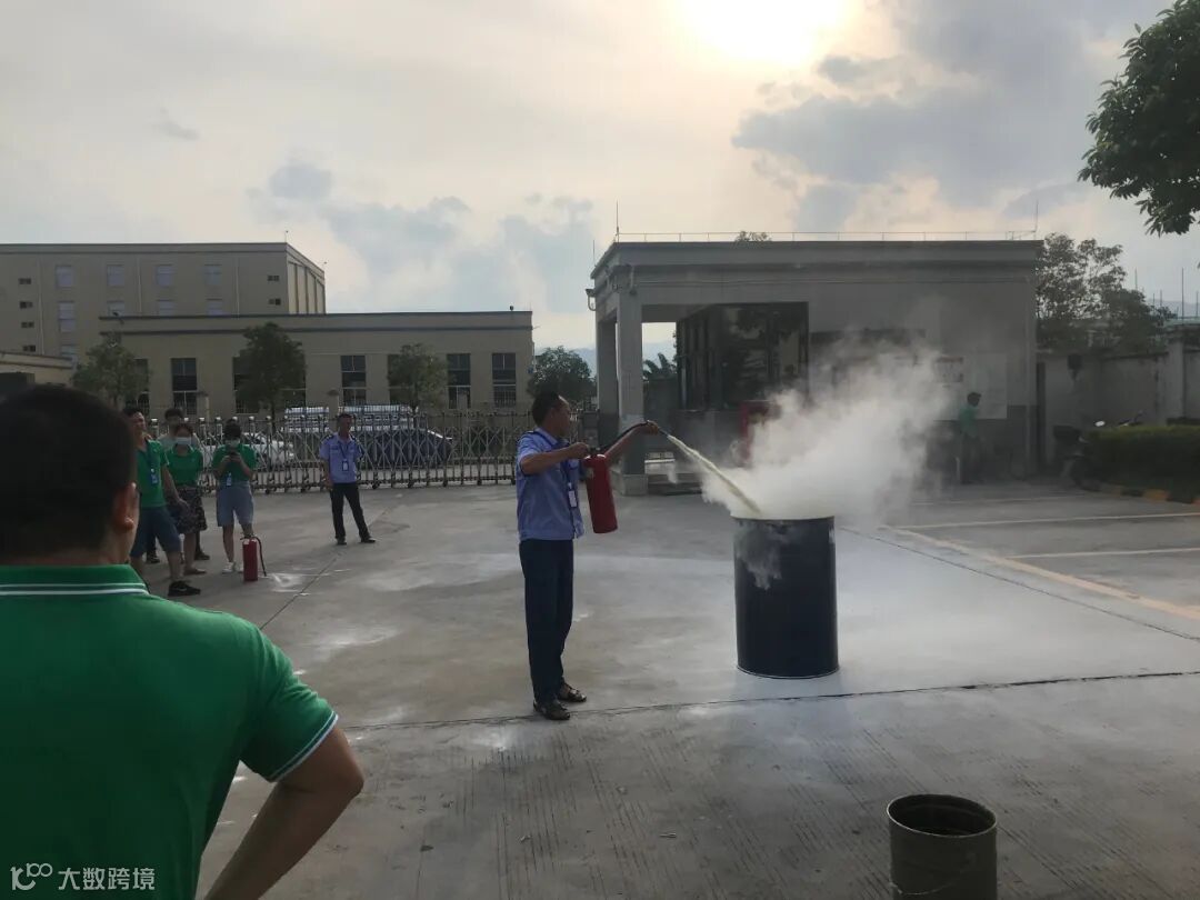 2.在办公楼前使用铁桶模拟着火点,由参加演练的员工使用干粉灭火器依次进行扑灭。