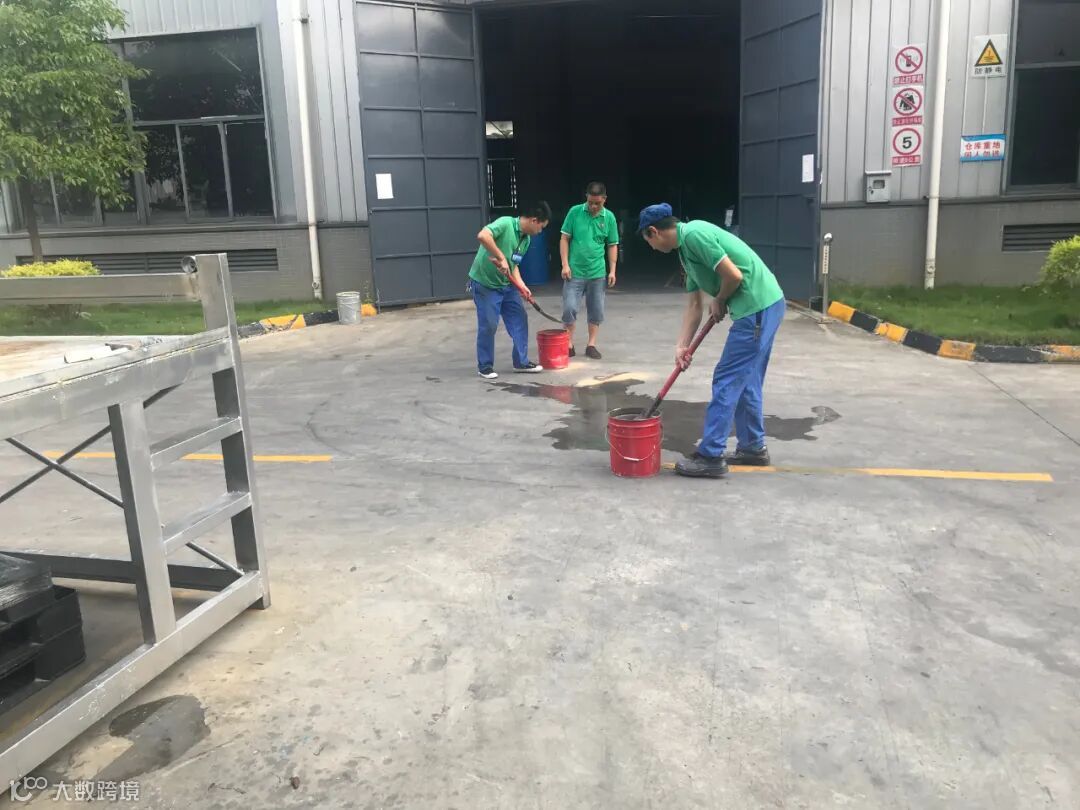 3.配料部领料员工、原材料仓仓管用沙桶和储罐区沙池内的河沙对泄露的危险化学品进行围堵、覆盖,并用干粉灭火器进行覆盖。