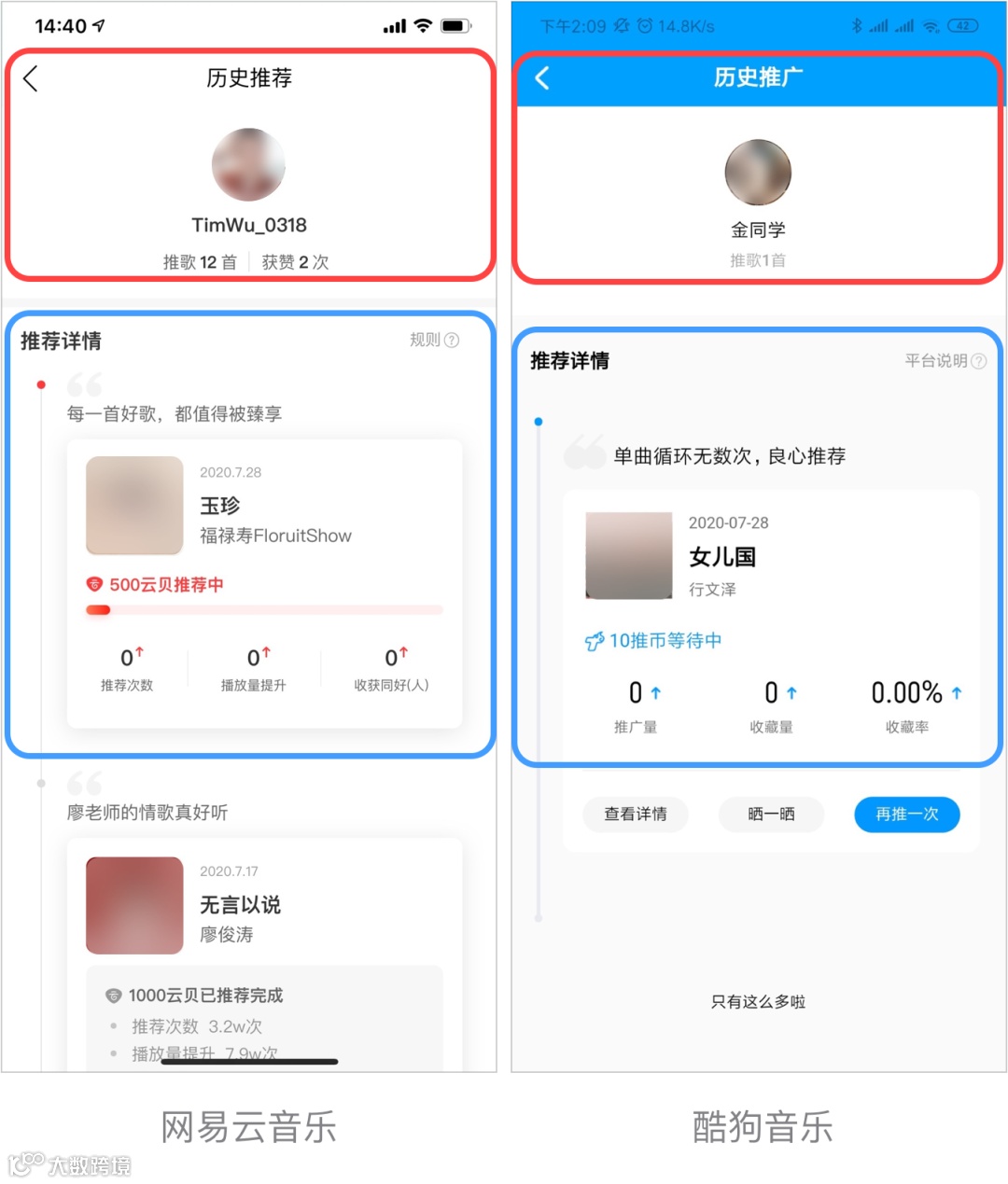 以上行为并非偶然和特例。网易云音乐在2020年4⽉份的7.1.10版本上线“云贝推歌”功能:粉丝可以用“云贝”为喜爱的音乐进行推广和支持。再小的光也有了被看到的可能。
