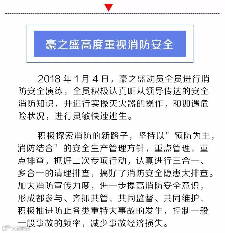 导读:2018年1月4日,豪之盛动员全员人员普及消防知识,进行消防演练