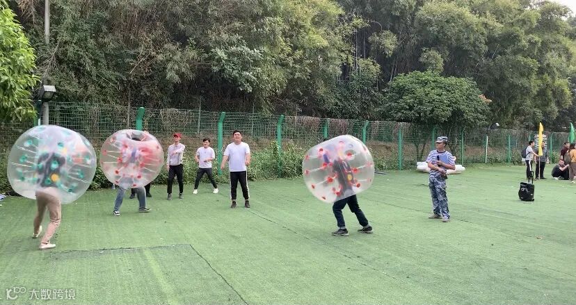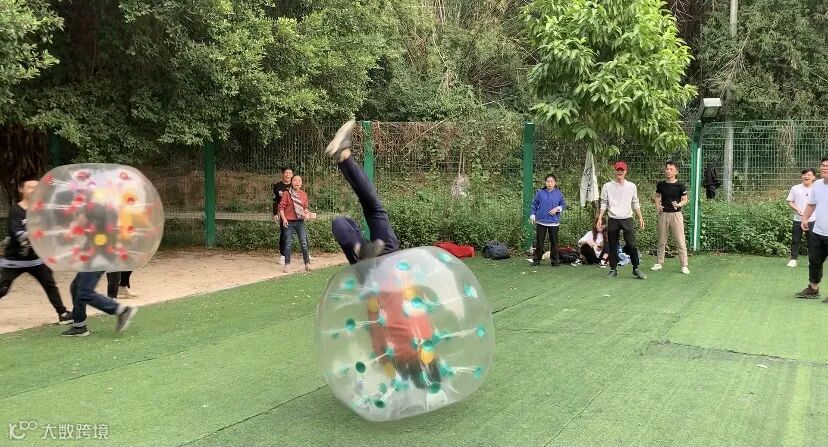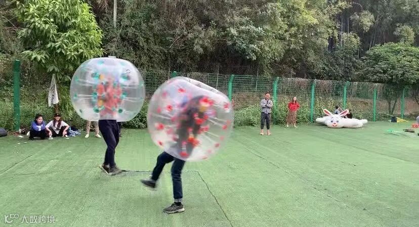 每队派出一名代表,钻进球内,在指定范围内,相互碰撞,被撞倒的人就被淘汰。