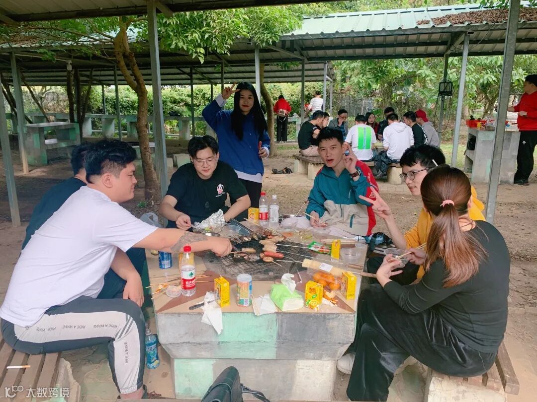 时间过的很快,转眼间中午吃饭的时间又到了。大家来到户外烧烤点,架起烧烤炉,生火、准备食材、摆放碗筷,分工协作,忙得不亦乐乎。