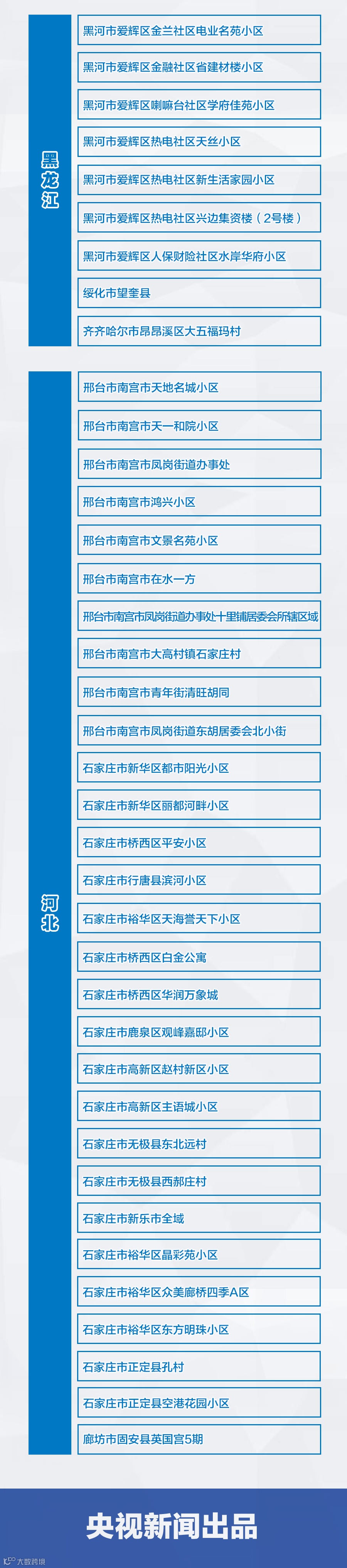 1月13日,将黑龙江省绥化市望奎县列入疫情中风险地区,望奎县惠七镇调整为高风险地区。