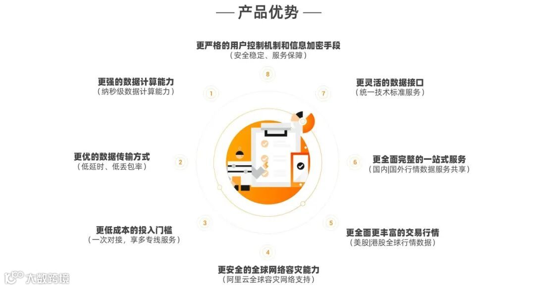 不同于同类产品,云行情产品着力于通过连接全球各交易所的基础行情数据服务,通过协同纳斯达克一起在阿里云平台上构建美股行情数据服务的弹性能力,为全球金融机构、互联网公司提供端到端的一站式云行情产品和服务。