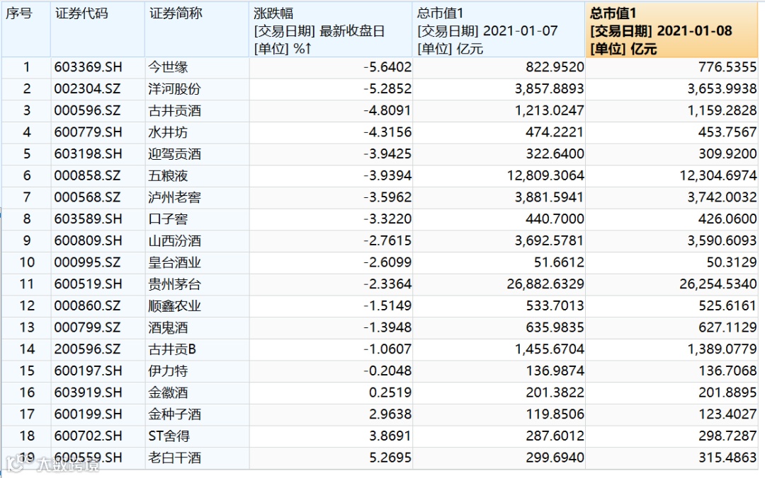大盘按下暂停键与强势股回调关系密切。其中,以白酒为代表的消费股成为杀跌的重灾区,白酒板块单日蒸发1700亿元,贵州茅台(600519)一度杀跌超3%。另外,新能源的龙头宁德时代(300750)亦出现了调整,全天跌幅超2.1%。