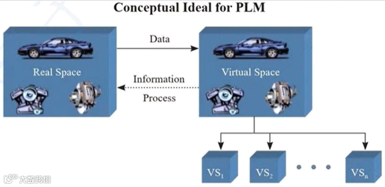 当然,目前业界普遍认为“数字孪生”的概念是由美国密歇根大学的Michael Grieves教授于2002年在产品全生命周期管理(PLM)课上提出,他将该设想称为Conceptual Ideal for PLM。其主要核心思想就是通过在虚拟空间构建的数字模型与物理实体交互映射,描述和管理物理实体的产品全生命周期。