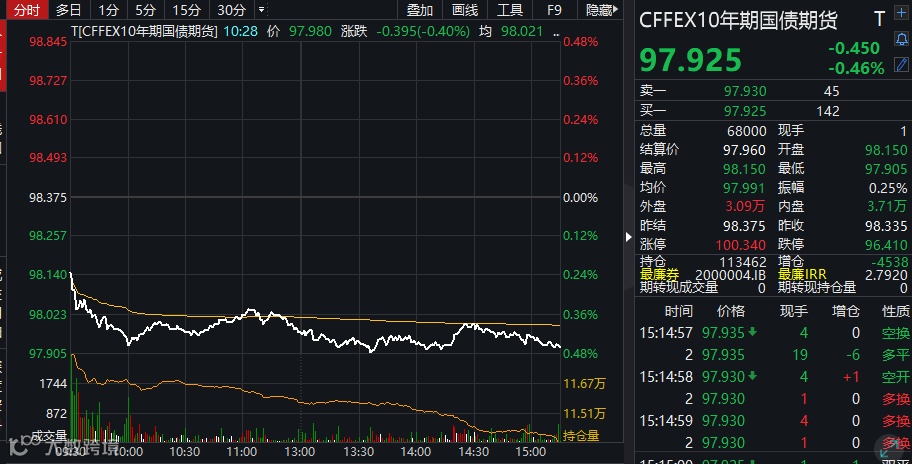26日,国债期货午盘全线下跌,10年期主力合约跌0.41%,5年期主力合约跌0.28%,2年期主力合约跌0.15%。而银行间主要利率债收益率大幅上行,短券上行幅度更大。10年期国债活跃券200016收益率上行3.12bp,5年期国债活跃券200013收益率上行5.25bp,2年期国债活跃券200011收益率上行5.75bp。10年期国债活跃券200016最新成交在3.16%,上日尾盘为3.1350%;10年期国开债200215最新成交在3.5550%,上日尾盘报在3.5325%。