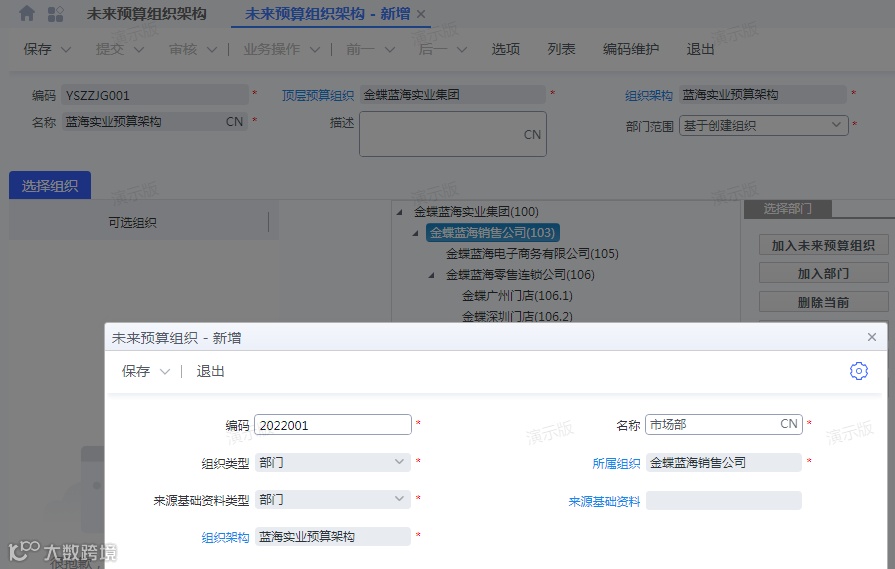 还提供了向导式操作指引,使得未来组织预算工作操作简单,方便实用。企业通过向导式操作,编制未来架构预算,可在现行预算组织架构创建,增加组织级预算组织,新增部门级预算组织,删除不再需要的预算组织,调整预算组织位置,按需进行组织的增、删、改。
