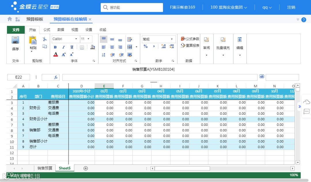 • 在HTML5模式下,基于类Excel电子表格,赋予了更多预算编制业务特性的报表在线编辑