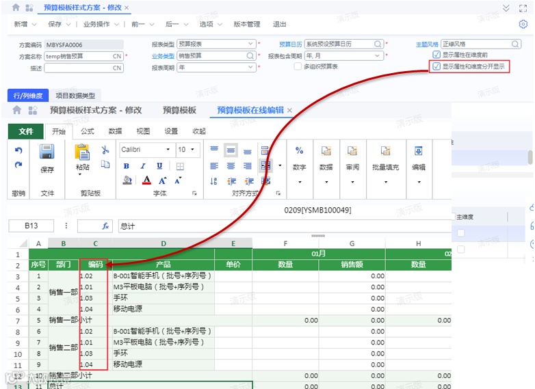 • 在线编辑预算报中以单独列的形式显示维度的属性信息,更直观展示数据