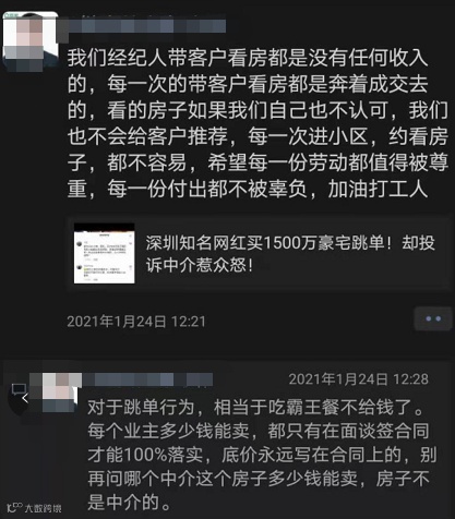 中介一怒之下把这事曝光到了网上,引发了网红粉丝的大面积脱粉,网友把网红的抖音骂到一度关号。深圳市房地产中介协会发文:对“跳单”行为零容忍!
