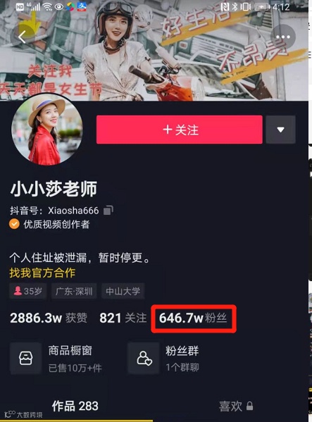 资料显示,小小莎在抖音坐拥超600万粉丝,在微博粉丝近300万,两个平台的粉丝合计近千万。