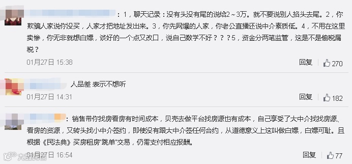 网上也刷屏该事件,有网友认为,销售带你找房看房有时间成本,自己享受了大中介找找房源、看房的资源,又转头找小中介签约,即使没有跟大中介签任何合约,从道德意义上这叫做白嫖,白嫖可耻。