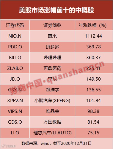 刚刚因跨年晚会吸引无数眼球的哔哩哔哩(BILI.O),尽管在2020年的最后一个交易日出现股价重挫,不过年度累计涨幅惊人,达到360.37%,位列第三位。