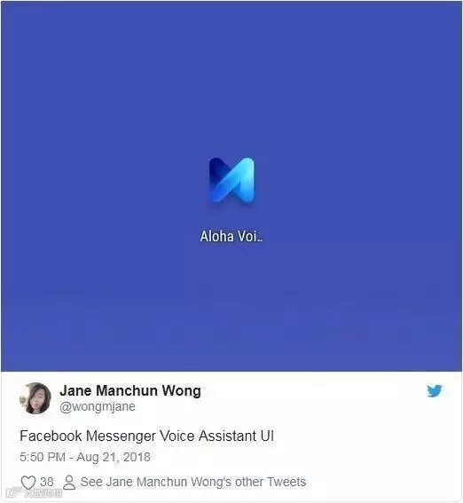 昨日,有研究人员在 Facebook 主程序及 Messenger app 中发现了代号为「Aloha」的语音助手的身影。该界面被标记为「语音测试」(Aloha Voice Testing),显示了已被 Facebook 解散的「M」虚拟助手相关的蓝色图标。在后续晒出的推文中,可以看到一个消息框、以及语音转文本的演示。