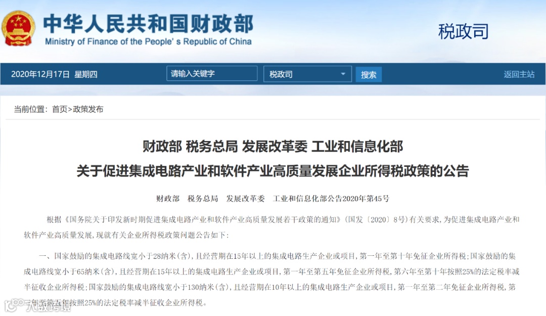 12月17日,财政部、税务总局、发改委、工信部联合发布《关于促进集成电路产业和软件产业高质量发展企业所得税政策的公告》(下称《公告》),进一步明确国家鼓励的集成电路企业和软件企业的企业所得税减免政策。