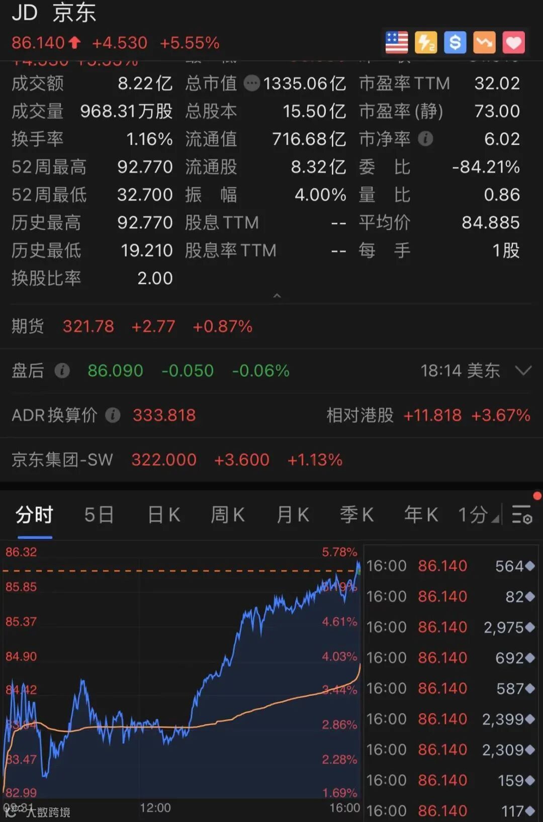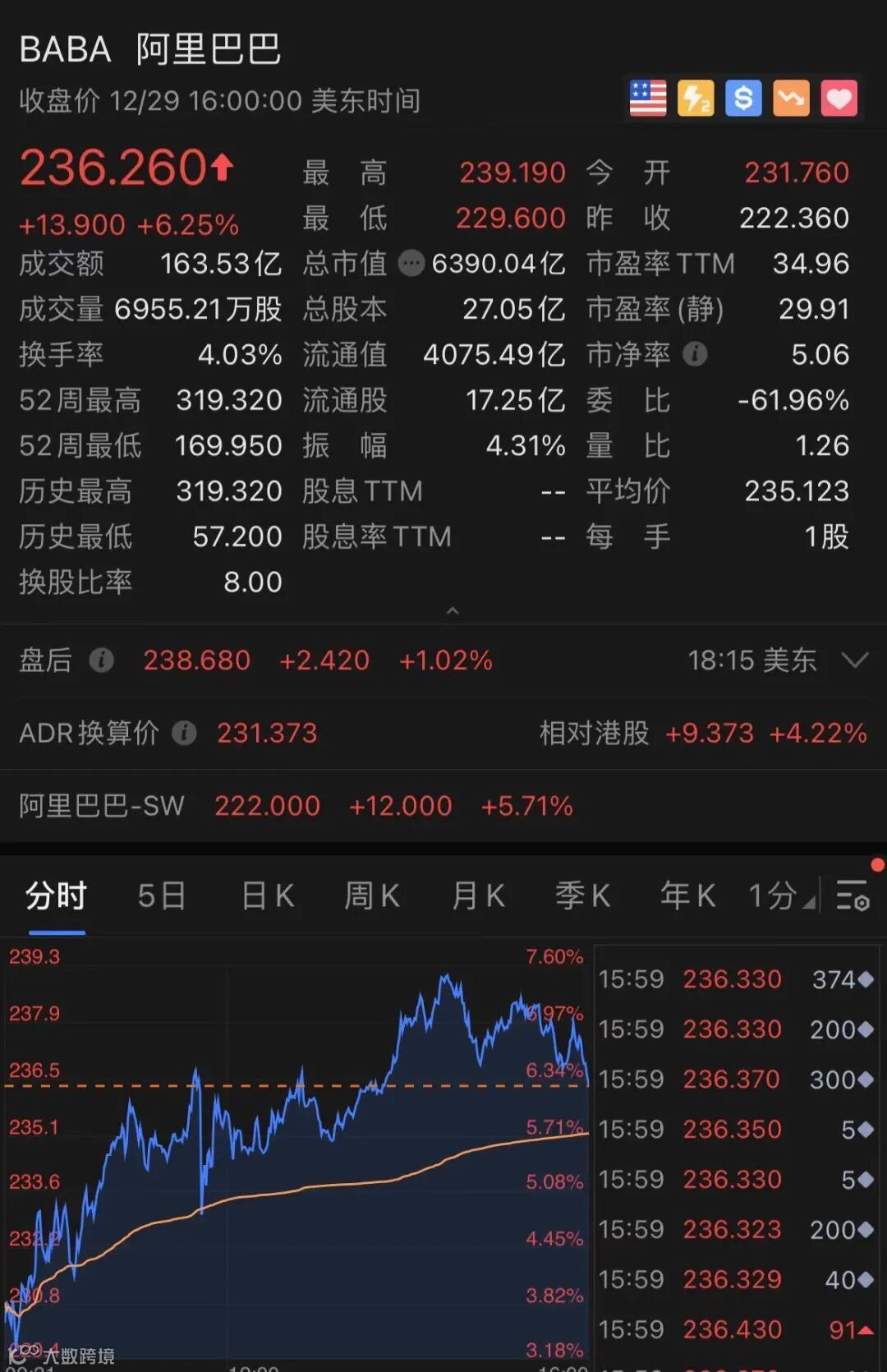 阿里巴巴美股盘中最高涨7.6%,创今年7月以来最大盘中涨幅,收涨超6%。