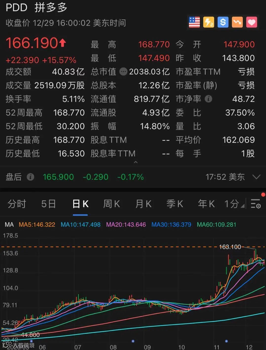 美东时间周二,拼多多大涨15.57%,市值一夜飙升274亿美元,约合1800亿人民币。截至收盘,拼多多市值已突破2000亿美元。