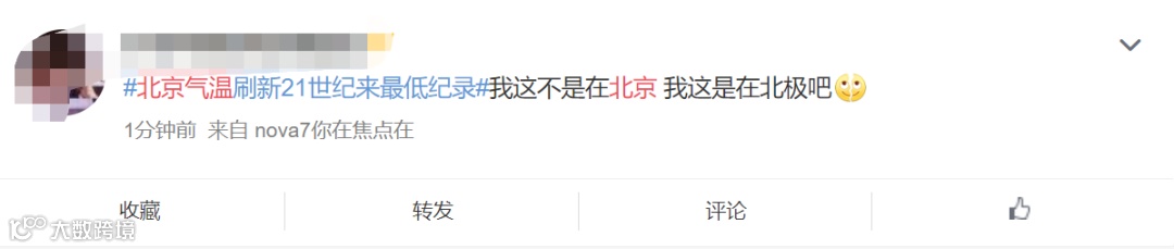 网友评论称:“我不是在北京,是在北极”。