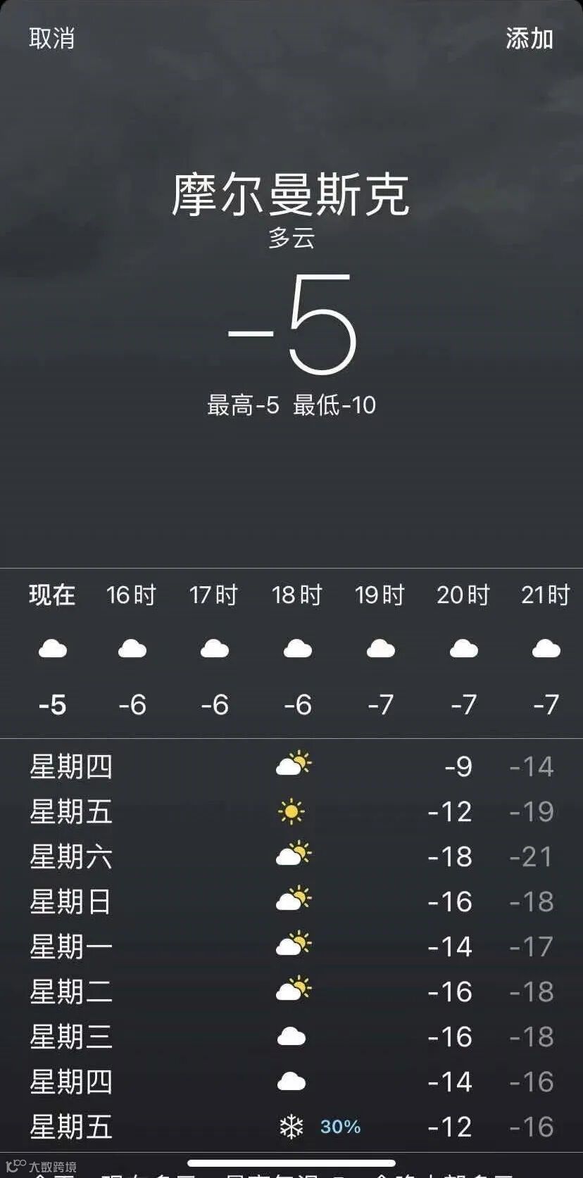 值得注意的是,北京的温度已经比北极圈内的一些城市要低了。