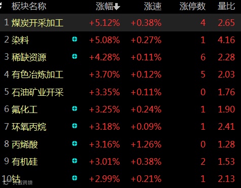 市场资金继续追捧顺周期板块,染料、煤炭、有色、有机硅等板块全线大涨,白酒股冲高回落,证券、银行等权重走强,市场仍处于结构性行情。旅游酒店、医美、机场航运等板块跌幅居前。