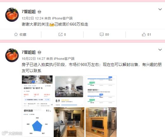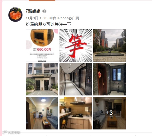 对此,记者尝试联系“7蟹姐姐”,但截至发稿还没得到回复,但在“7蟹姐姐”的微博上,已经看到相关房子的一些信息。