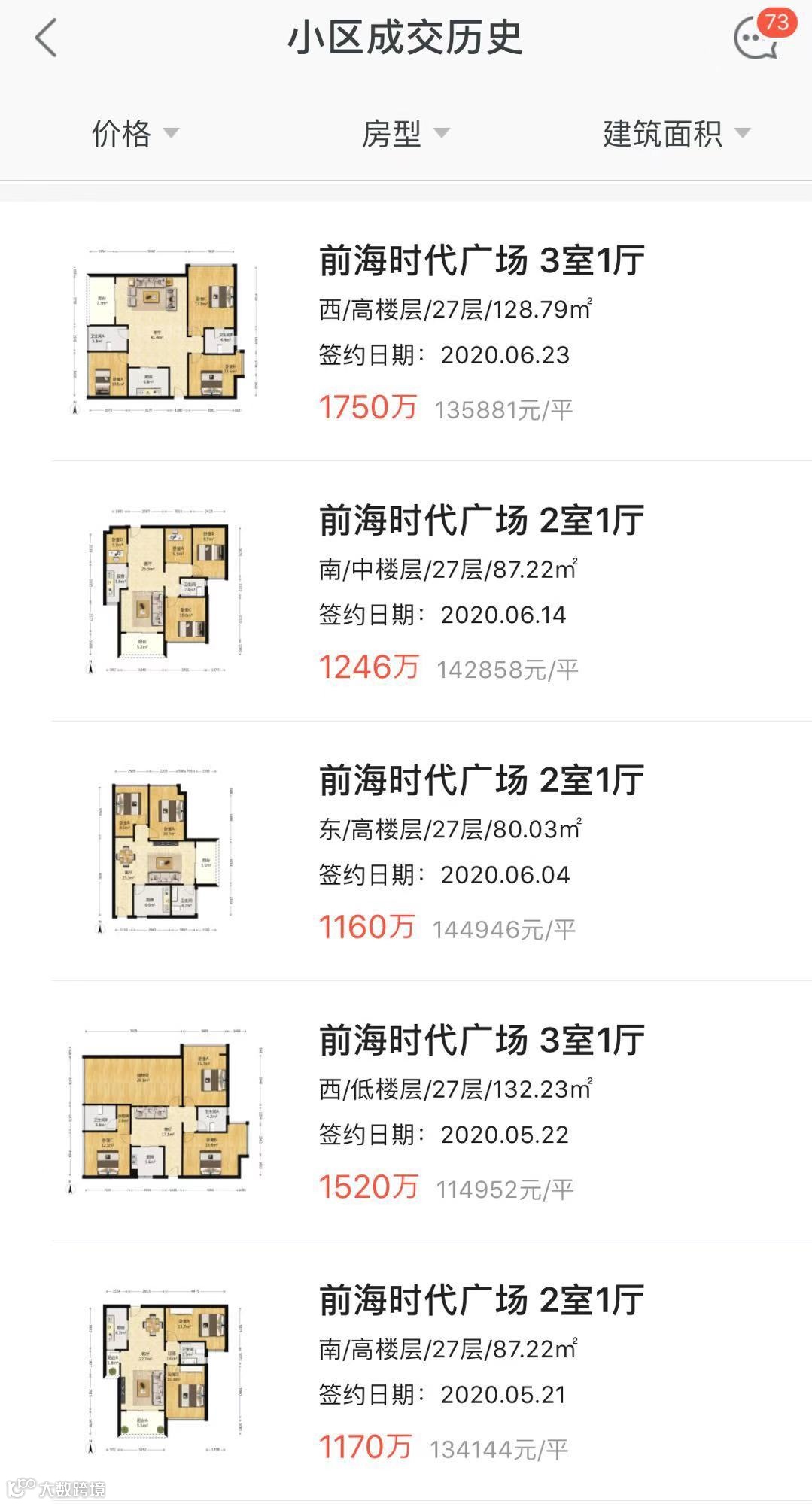 近日,位于前海湾的前海时代广场1栋1707的房产在淘宝上进行拍卖,该房产建筑面积为49.36平方米,起拍价660万。最终以起拍价成交,均价13.37万/平。