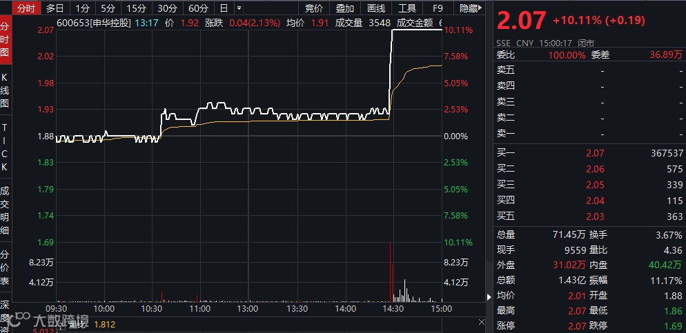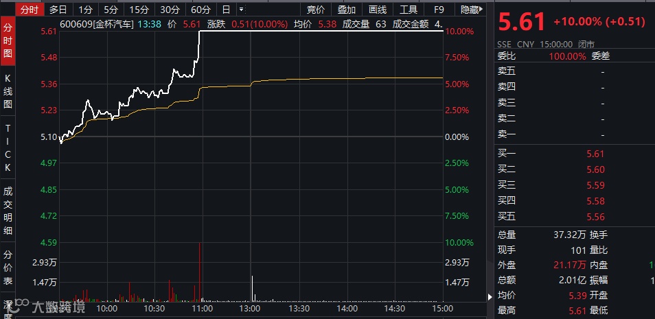 受到华晨集团破产重组消息刺激,华晨中国短线上扬,涨幅扩大至近10%,A股申华控股和金杯汽车纷纷涨停。
