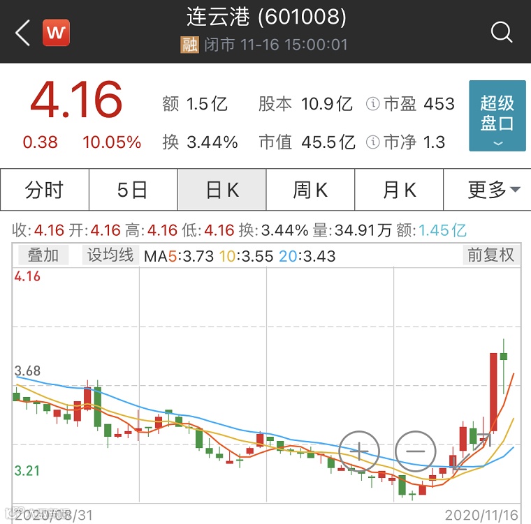RCEP的正式签署,全球最大的自贸区应运而生,而双边自由贸易自然离不开港口,另外受疫情影响大多港口股今年以来都不太理想。在RCEP利好的刺激下,早盘港口板块集体活跃,带动交投设施板块指数放量大涨2.49%,连云港开盘一字涨停,锦州港、北部湾港、青岛港、五洲交通等盘中也一度涨停。机场板块也跟随走强,白云机场、上海机场、深圳机场等纷纷大幅上扬。