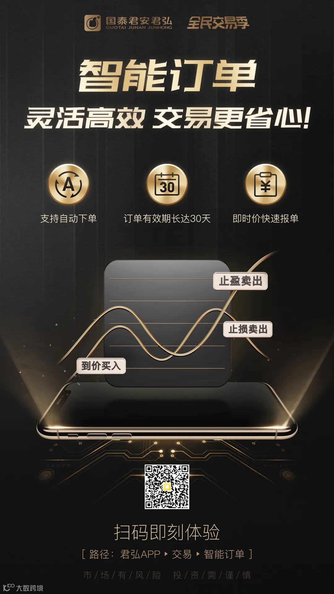 同时,为满足投资者对于便捷下单体验的需求,特别是“千禧一代”上班族在无暇盯盘情况下智能化交易需求,君弘APP全新上线智能订单功能,提供交易策略、行情监控、自动化委托等一系列智能交易服务,支持到价买入、到价卖出、止盈止损、反弹买入、回落卖出五大常用策略,订单有效期较普通委托延长,有助于提高交易执行效率、节约时间成本,降低人性干扰,及时止盈止损。