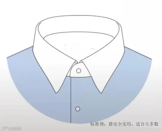 标准型领左右领尖的夹角为90 °左右。如果吃不准自己适合什么领型,选它总是没错的。