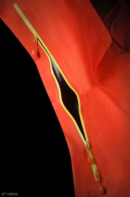 在人体出汗的情况下,腋下通风散热十分重要。所以那些相对来说更优质的冲锋衣会在腋下开个口,装个拉链或者网面,这种辅助措施可以促进汗水的挥发,增加透湿透气性。