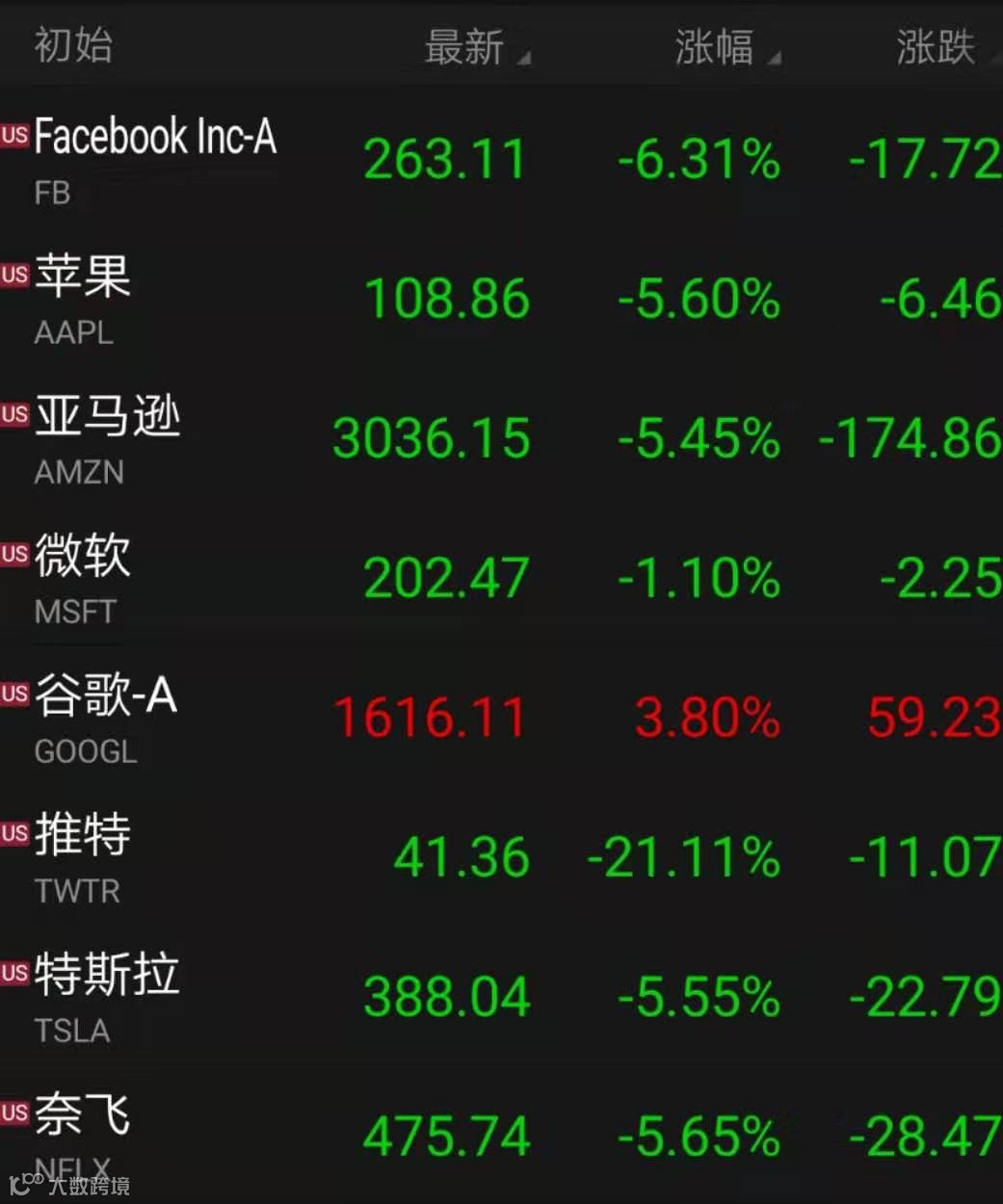 受三季报不及预期的影响,多只美国科技巨头公司股票出现了重挫。