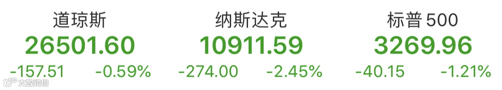 美国当地时间10月30日,美股全天呈现弱势震荡,尽管尾盘有所拉升,但依然无力改写跌势。截至收盘时间,道琼斯指数下跌157.51点,跌幅0.59%,报收26501.60点;纳斯达克指数跌274.00点,跌幅2.45%,报10911.59点;标普500指数跌40.15点,跌幅1.21%,报3269.96点。
