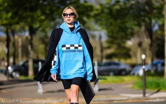 那么就可以利用亮色的卫衣来进行搭配,比如说亮蓝色的卫衣搭配黑色西装,就可以让大家成为街头当中的一道亮丽的风景线,还会让女性的形象更有活力感。