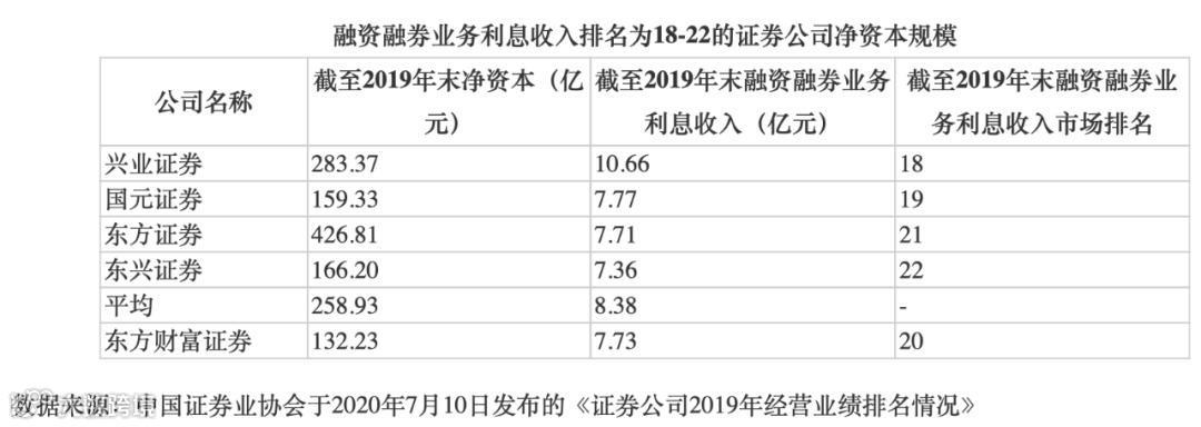 中证协数据显示,东方财富证券融资融券业务利息收入排名已由2017年末的第42名上升至2019年末的第20名。