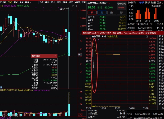 A股上市公司嘉友国际(603871.SH)今日早盘上演惊人一幕:公司股价在开盘10分钟的时间里,先是迅速冲击涨停,而后又闪崩,并牢牢封住跌停,成交量同时急剧放大。