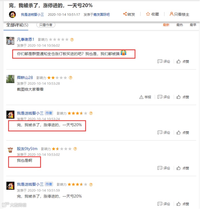 果不其然,很快就有多个网友在股吧中反映,自己被“杀”了,并贴出微信群截图。