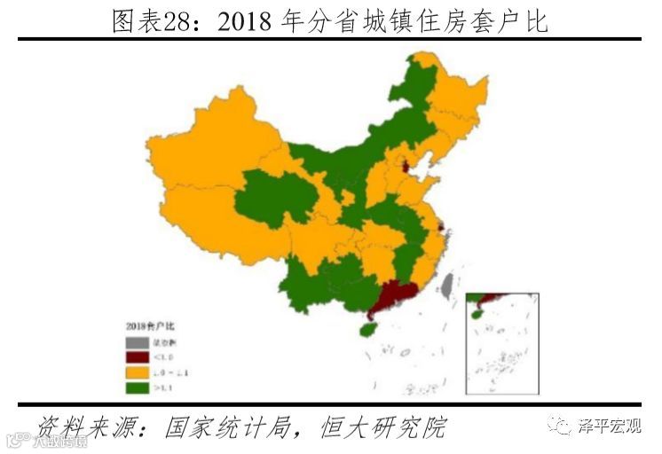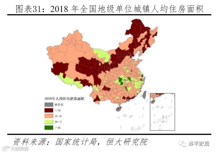 在全国336个地级单位中(不含三沙),既有73个城市人均住房建筑面积小于30平,也有46个城市人均住房建筑面积大于40平;既有17个城市的套户比小于1,也有51个城市的套户比大于1.2,未来更需重视区域差异中可能存在的结构性机会。