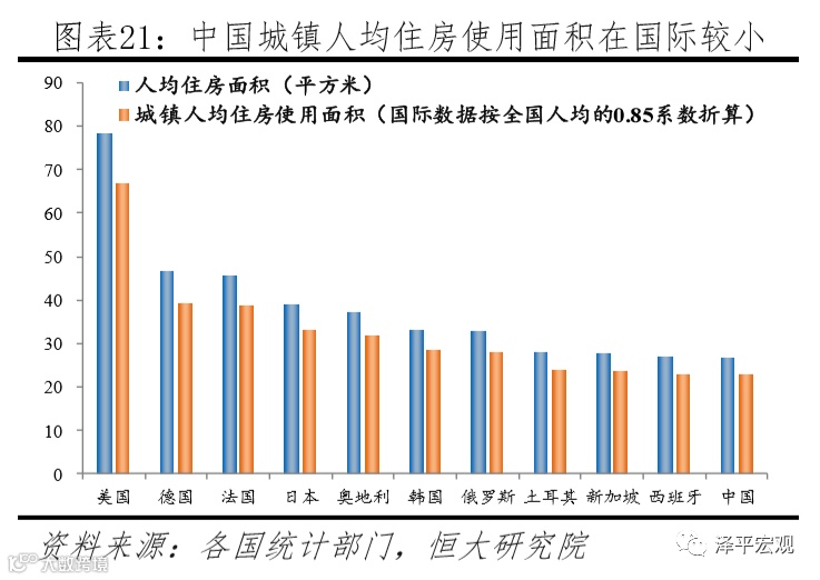 因此,如果以人均使用面积28平即人均建筑面积40平为标准算,未来中国城镇人均住房面积存在约20%的改善空间。