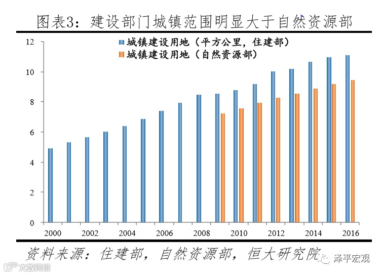三是官方直接公布的部分年份城镇住房存量数据要么范围偏小、要么偏大。1985年原城乡建设环境保护部和国家统计局组织开展了全国第一次城镇房屋普查,公布住宅建筑面积22.91亿平、使用面积15.09亿平,但涉及人口仅占当时城镇常住人口的约60%,范围偏小。原建设部曾在《城镇房屋概况统计公报2002-2005》中公布了2002-2005年全国城镇国有土地上住房存量(不含建制市城市规划区和县城以外的建制镇),加上《村镇统计公报》中的建制镇住房存量,可得2002年、2005年全国城镇存量分别为111.6、144.4亿平。但是,住建部定义的城镇范围可能偏大或存在重复统计,比如其2010年城市及县城建设用地、建制镇建成区面积加总为8.8万平方公里,较自然资源部公布的城镇建设用地7.6万平方公里大16%。