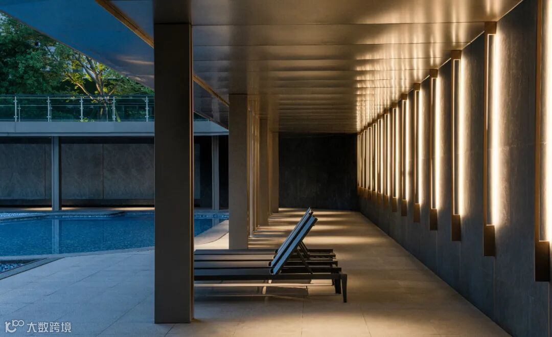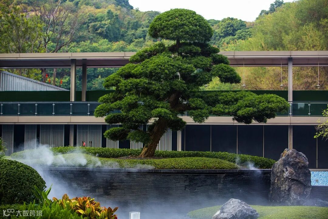 入口中轴8棵全冠幅香樟枝繁叶茂,两棵百万级的进口日本罗汉松与璞石水景交相辉映,泳池绿岛还点缀了5棵飘逸美丽的乌桕树,树影与景石、苍翠山景相互交叠,洗涤了城市中的喧嚣。