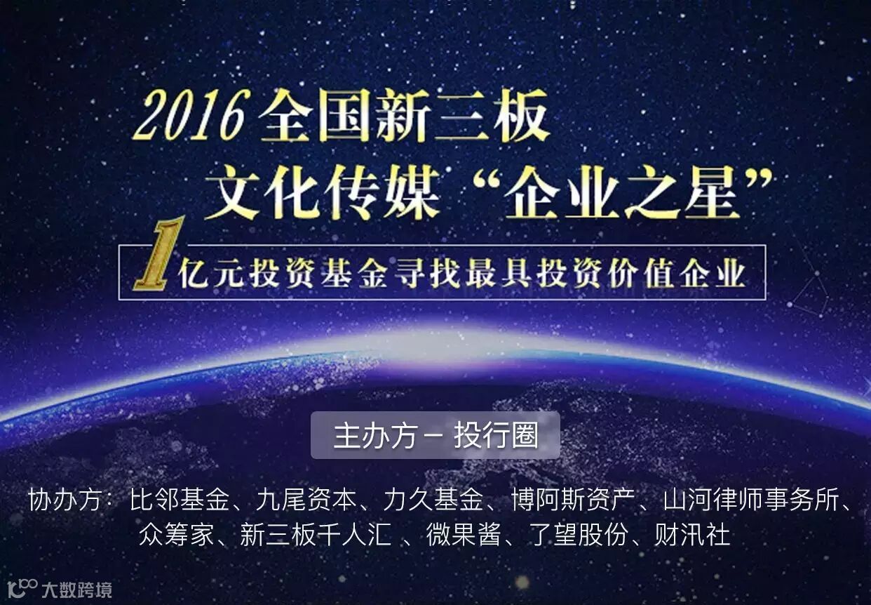 新三板江湖风起云涌,谁能得到投资人的关注?文化传媒企业英雄辈出,谁最具有投资价值?关注最具活力的文化传媒领域,聚焦最具投资价值的企业,提供最专业优质的服务,投行圈携手投资机构和新媒体,诚意邀您同行。